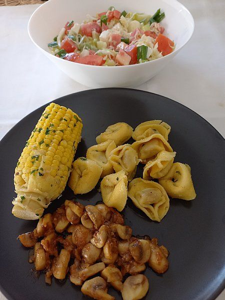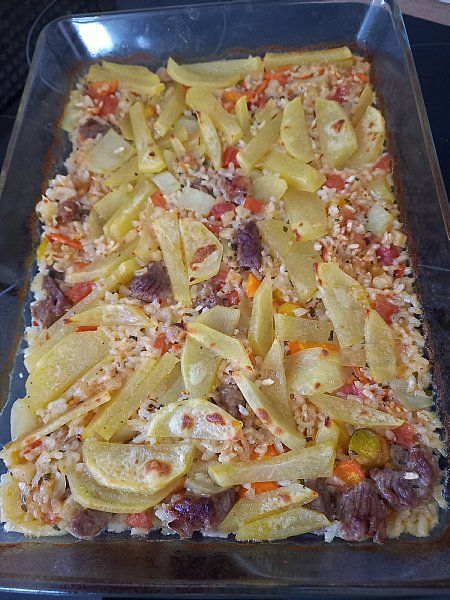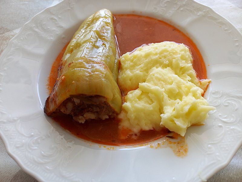 Pečena paprika, ostanki čevapčičev, basmati riž; zelena solata