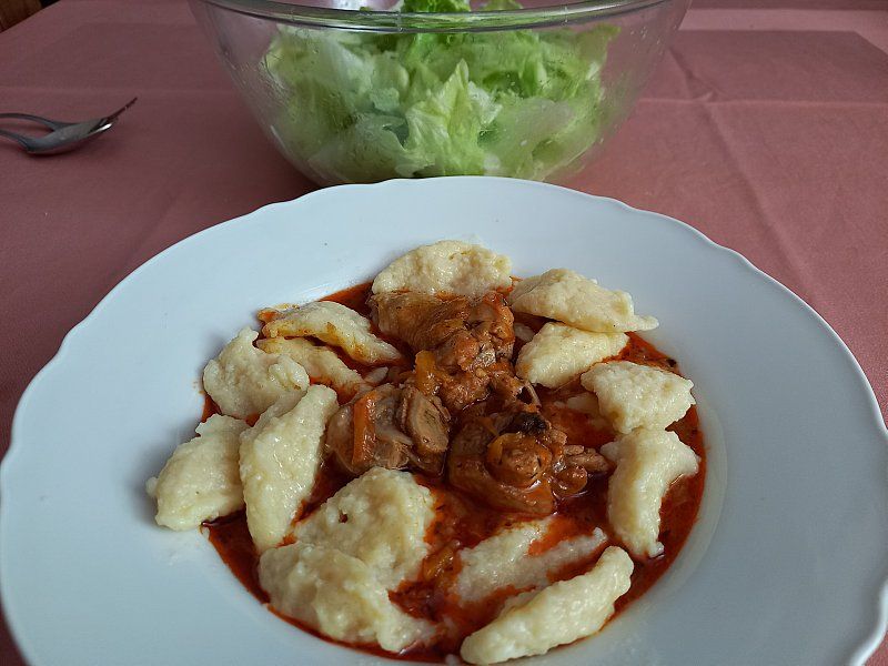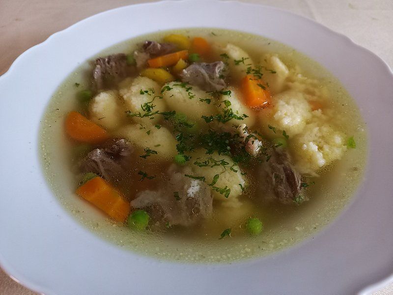 Juhica iz govejega repa, zelenjave in grez knedlčki