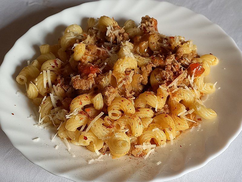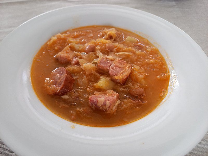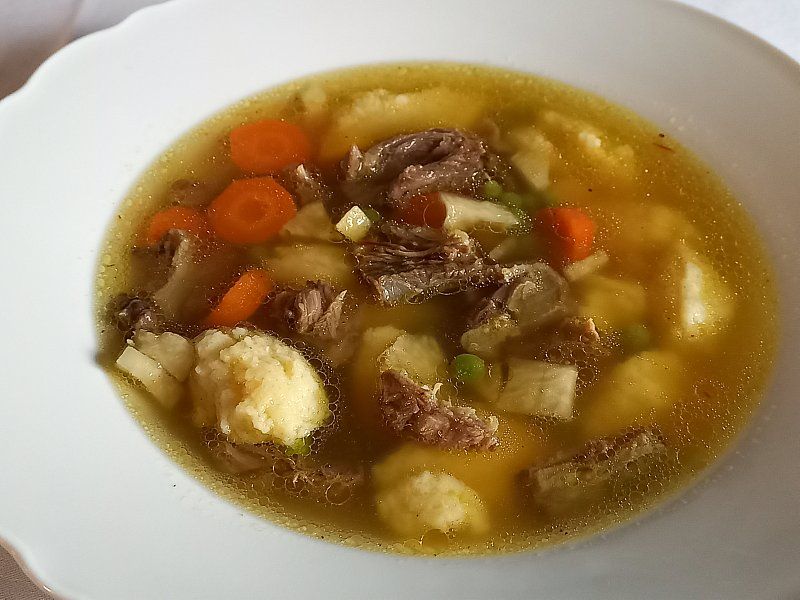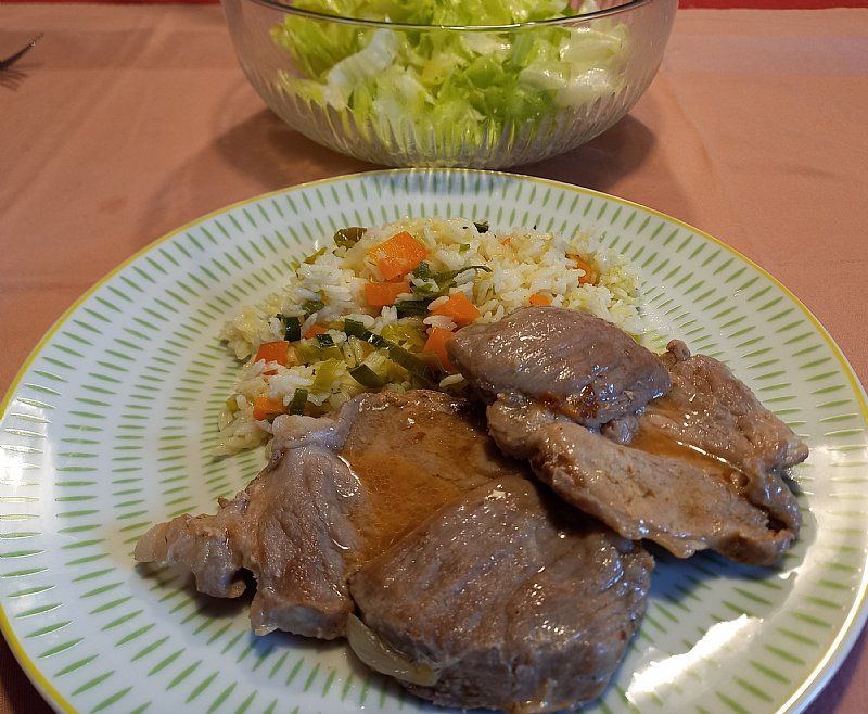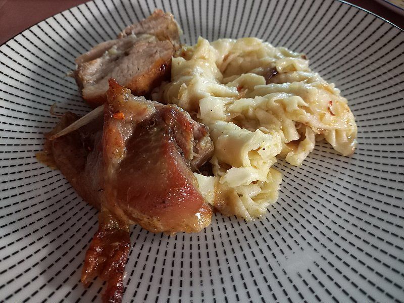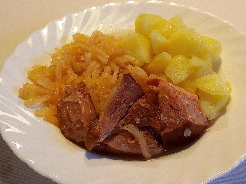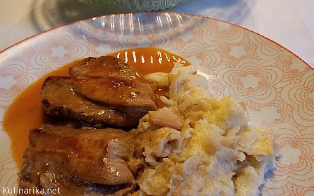 Vratovina v vinski omaki, rizi-bizi; štrucar s krompirjem
