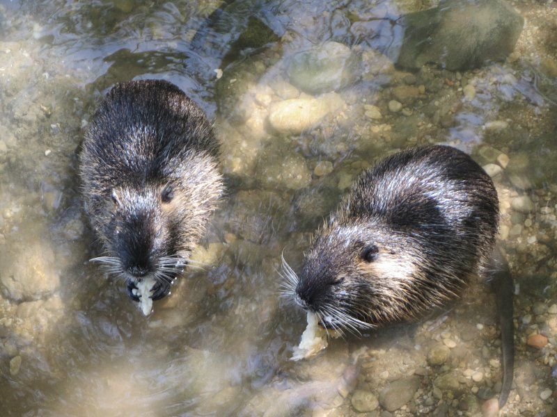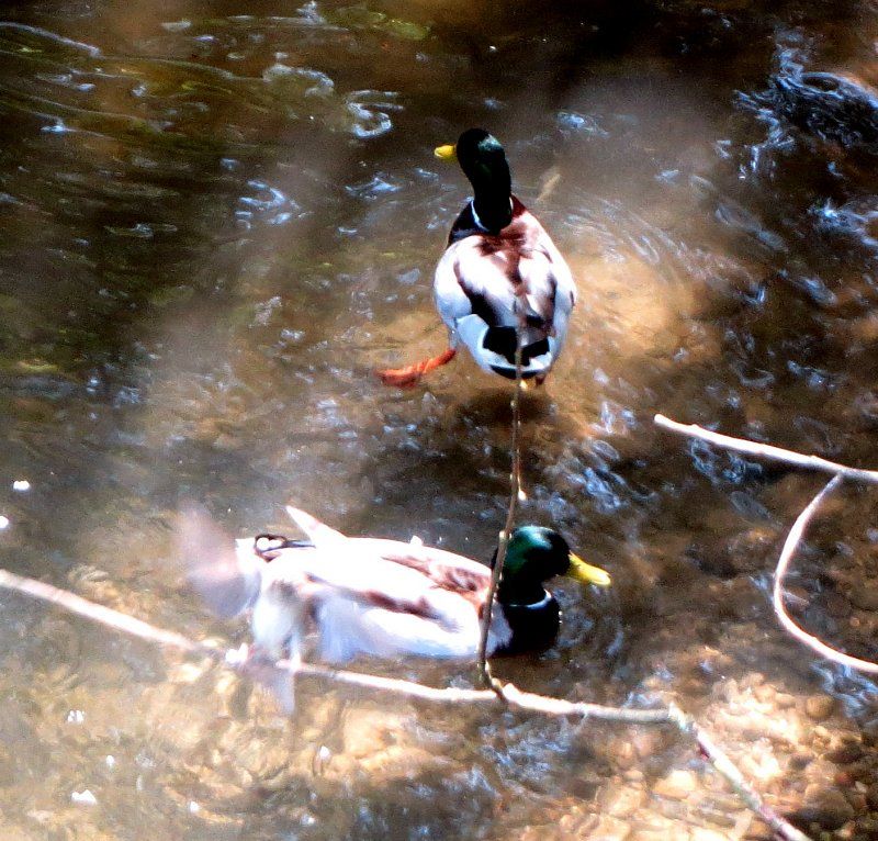 Race se skrivajo pod vejami ob bregu, ker je Ljubljanica na sredini zelo deroča