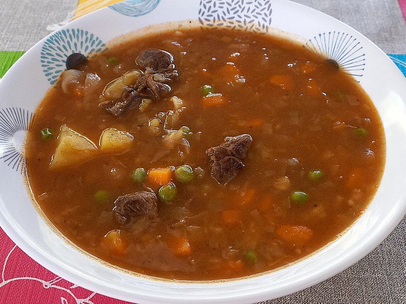 Goveji zrezek v naravni omaki, rizi bizi; mešana solata