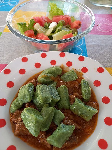 Goveji golaž , zeleni njoki; mešana solata