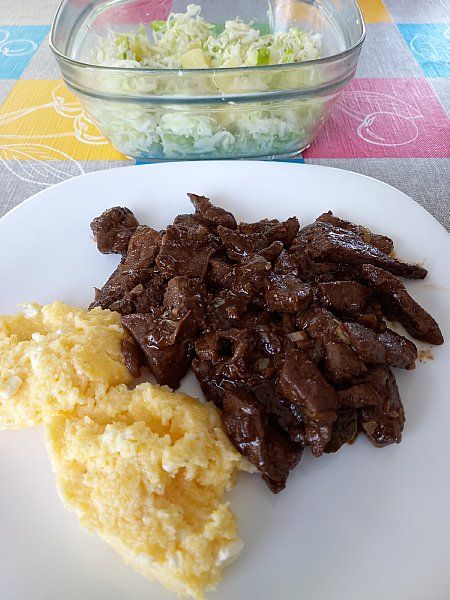 Pražena jetrca, polenta s feta sirom
