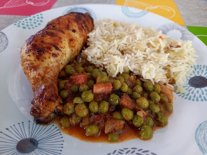 Basmati riž na poru, grah v omaki, nadevano piščančje bedro