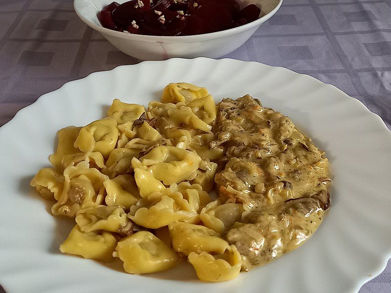 Ravioli, jurčkova omaka s smetano