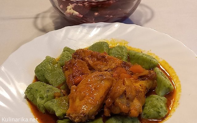 Zeleni njoki, piščančji paprikaš, rdeča pesa