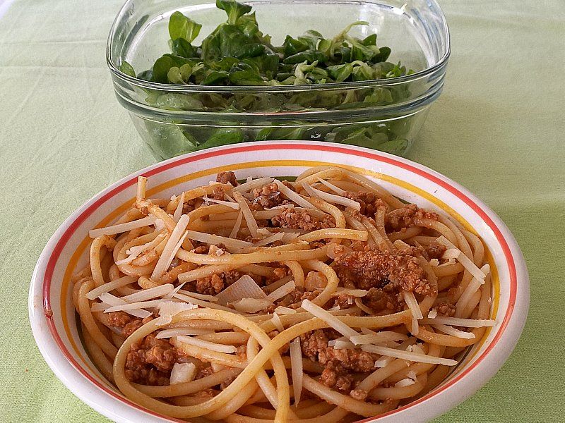 Spaghettoni z omako iz kozic, paradižnikov in sveže bazilike