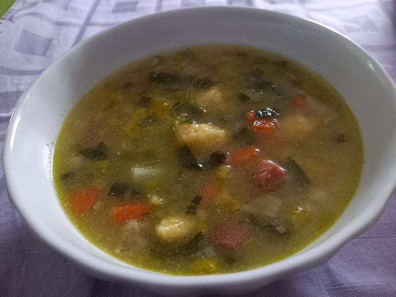 Ajdovi štruklji, reciklaža govedine z dodatkom bučke; zelena solata