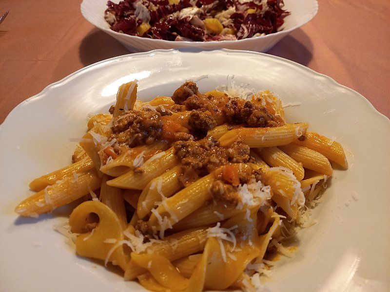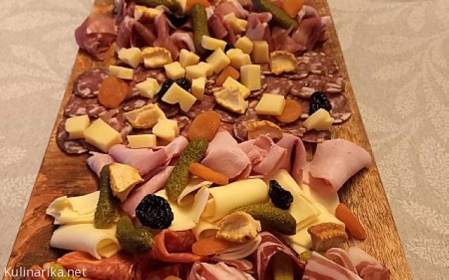 Pečen piščanec, račja prsa, krvavica, rdeče zelje, mlinci