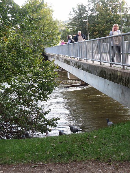 deroča Ljubljanica sega skoraj do mostu, nikjer labodov in račk