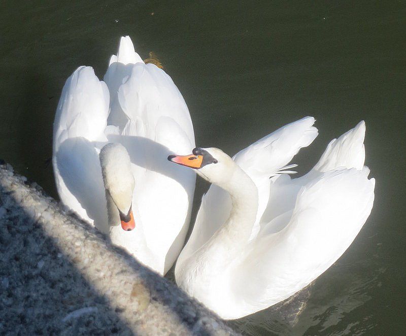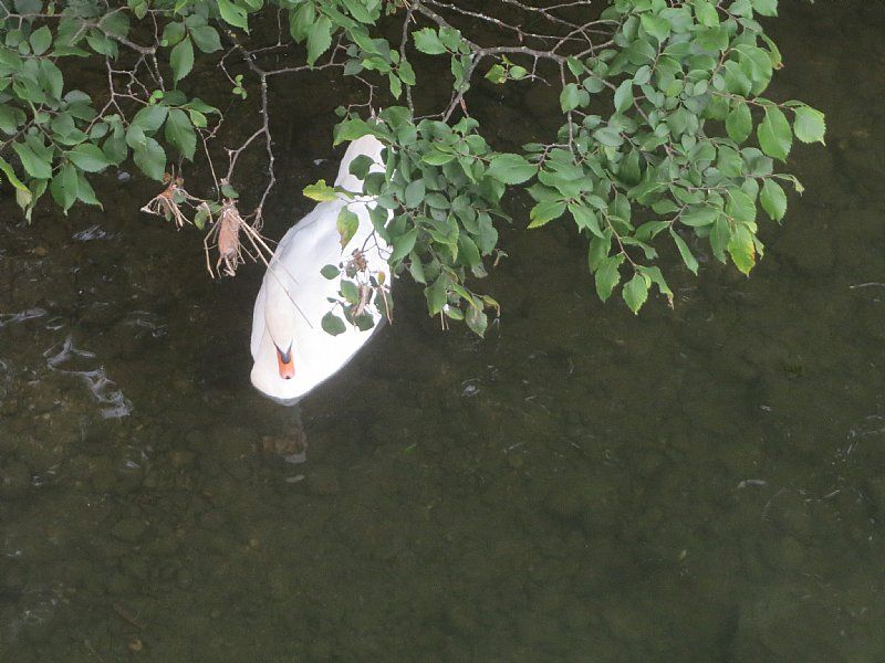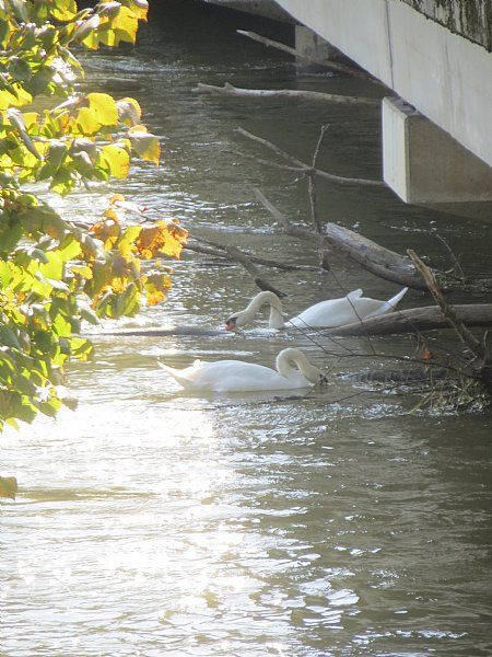 Samo laboda se borita z visoko, deročo Ljubljanico