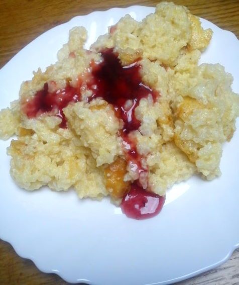 rižev narastek z domačo slivovo marmelado