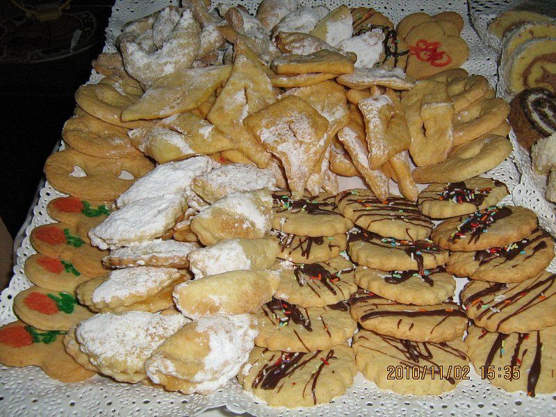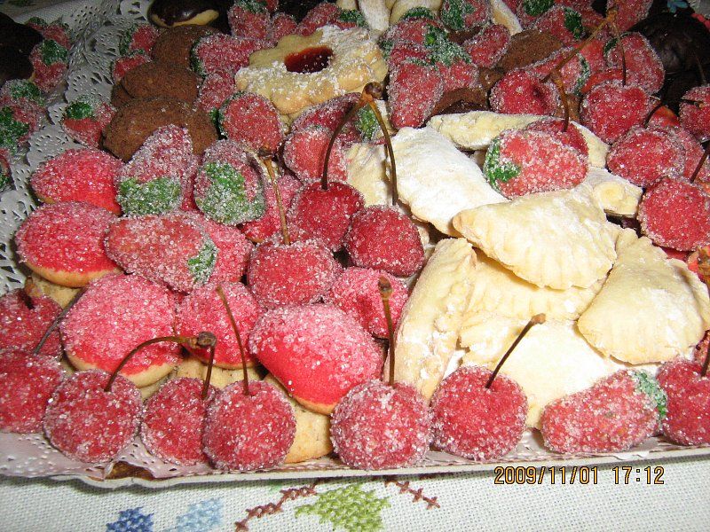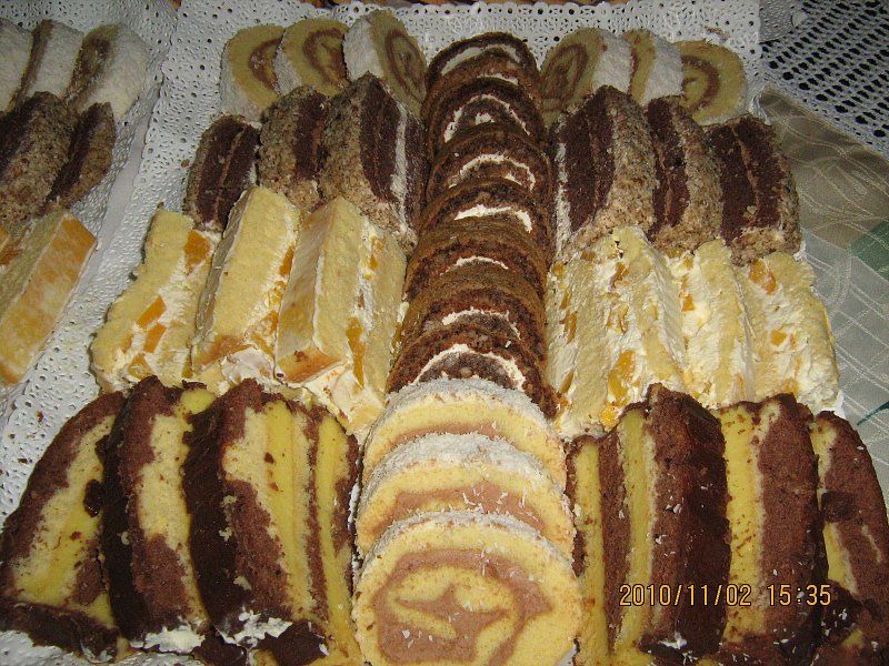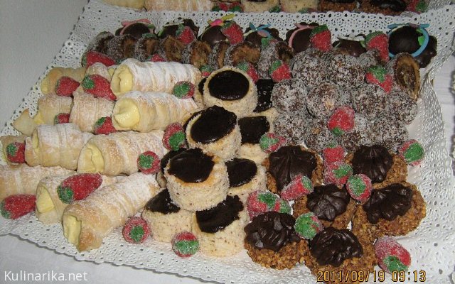 šamrole z vaniljevo kremo,ruske kučme,huzarski krapki,jagode,kostanji,mandeljnev