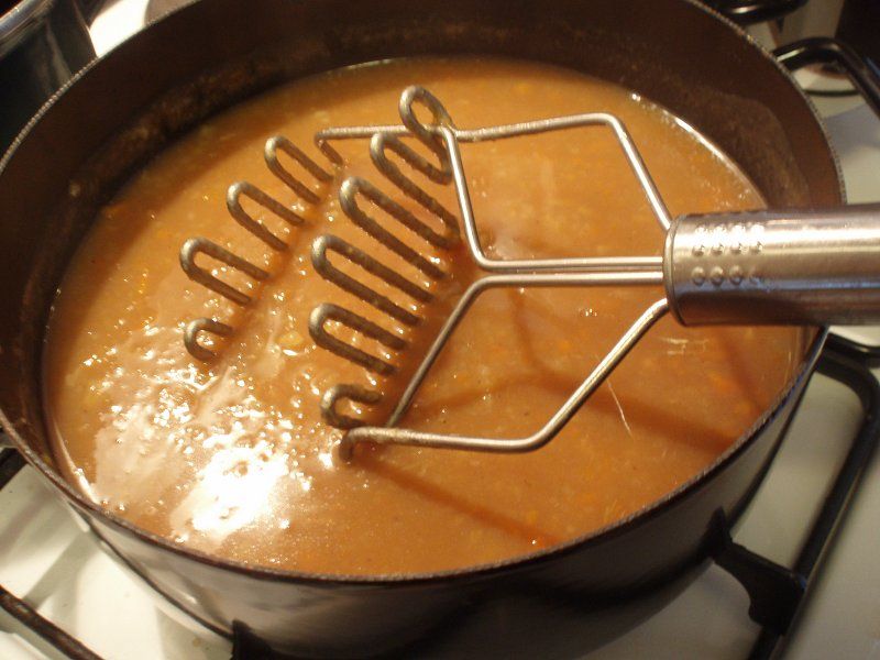 Zelenjavo dušimo na oljčnem olju. Ko se zmehča pasiramo