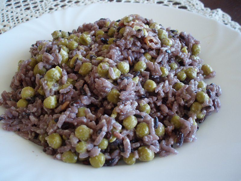 Riž zabelimo z grahovo omako, ki smo ji dodali mažarsko salamo