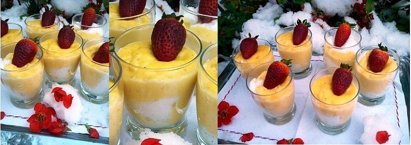 Snežne kepe v vanilijevi kremi z jagodno omako v aprilskem snegu ...