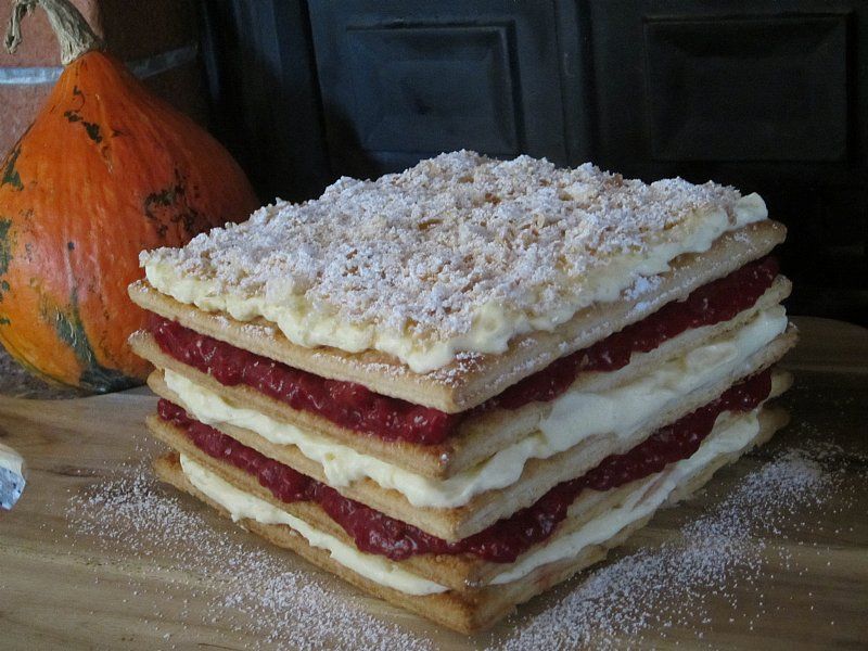 Listnato testo, slaščičarska in malinova krema