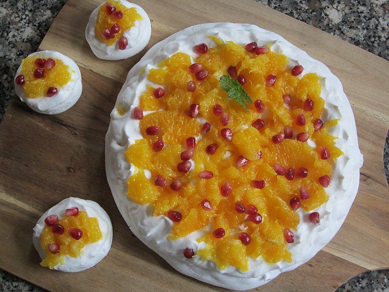Pavlova z razlistano pomarančo