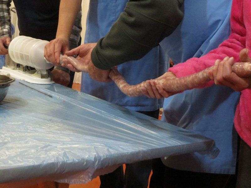 polnili črevo za naj suho klobaso - uspelo nam je izdelati kar 6 m in 57 cm
