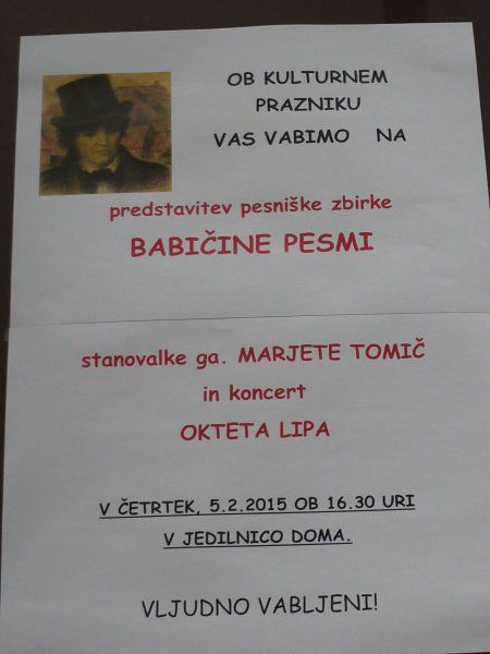 svečena našemu največjemu pesniku Prešernu. Pesmi so recitirali stanovalci Doma.