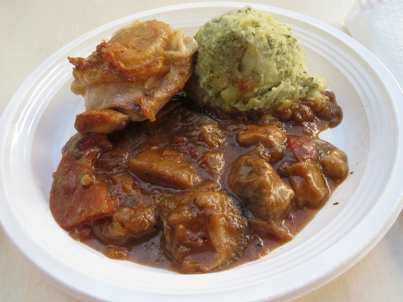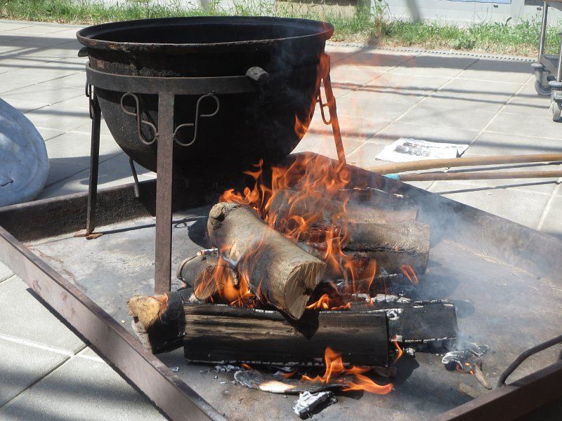 čerja se je kuhala v kotlu - zelenjavni paprikaš, pečeni piščanec in pire krom-