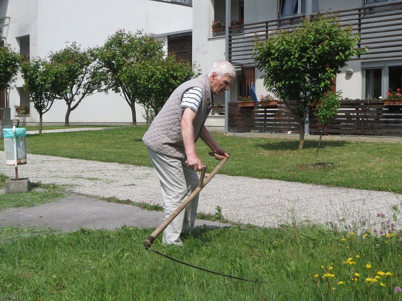 V četrtek so moški pokosili travo v domskem parku, ki je bila ponekod že precej