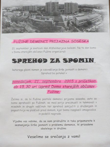 s katerim smo hoteli ozavestiti prebivalce Fužin na vedno več obolelih za demen-