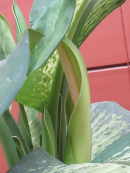 najmanjša difenbahija je odprla dva mala cvetka