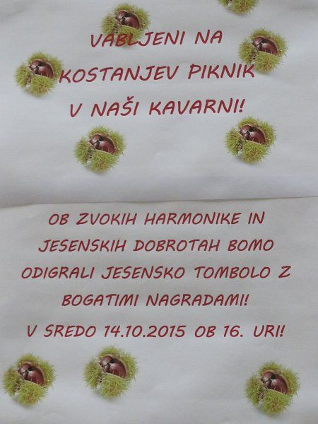 Včerajšnji kostanjev piknik smo združili z jesensko tombolo. Najedli smo se