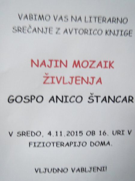 Včeraj smo imeli literarno srečanje z avtorico knjige Najin mozaik življenja.