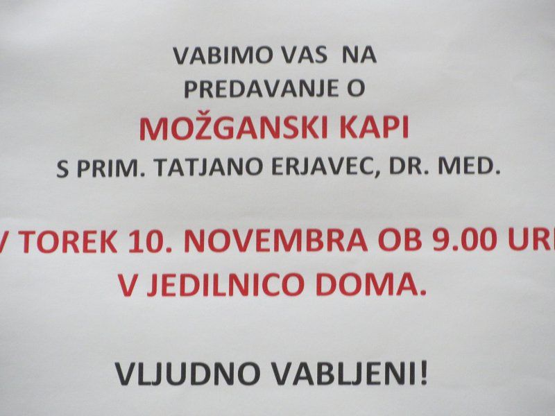 Dopoldan smo imeli zanimivo predavanje o možganski kapi.