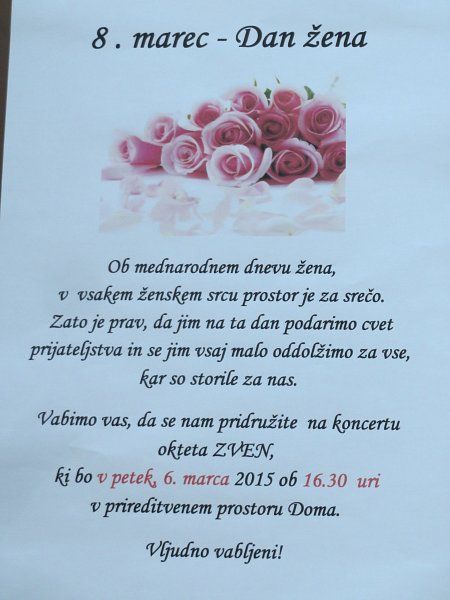 8. marcu, dnevu žena. Med koncertom so nas sostanovalci
