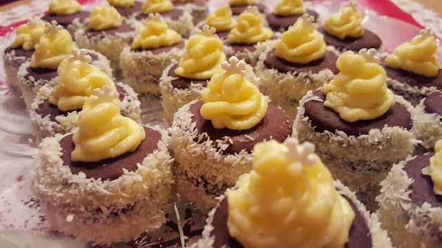 Smem vprašat kako se imenuje ta prvi piškot ko sta dve polovički zlepljeni z neko čokolado? Drugače pa vse zgleda top!