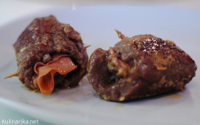 Goveje rolade s sirom in šunko.