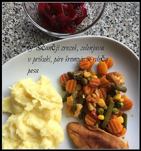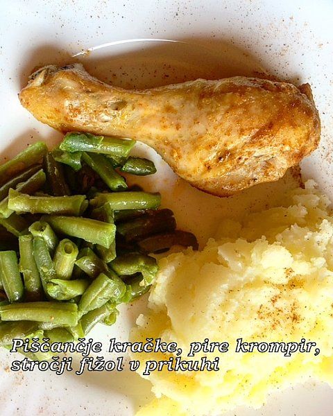 Piščančje kračke, pire krompir, stročji fižol v prikuhi