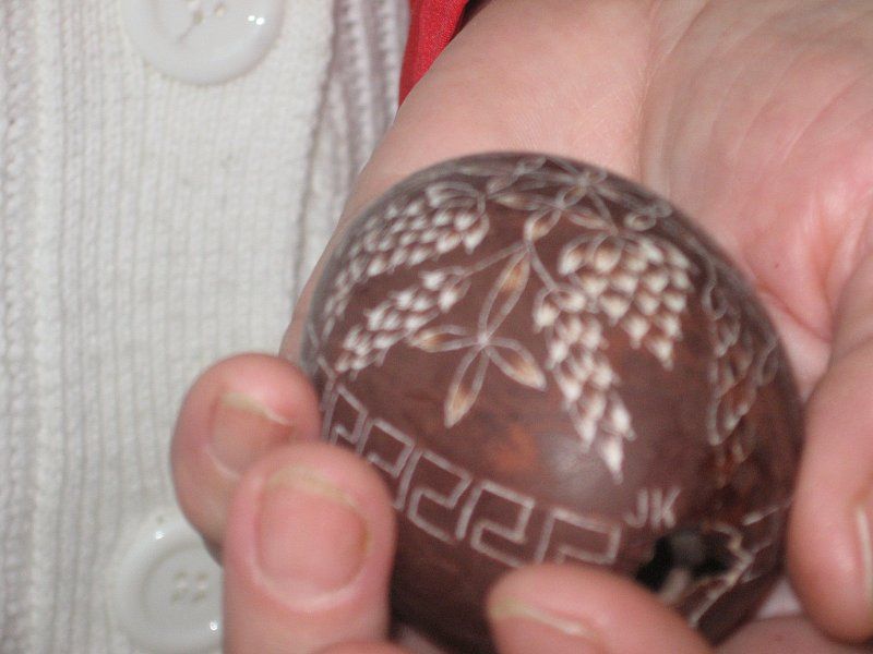 pa ročno poslikana jajčka - darilo obiskovalcev iz DSO Šmarje pri Jelšah.