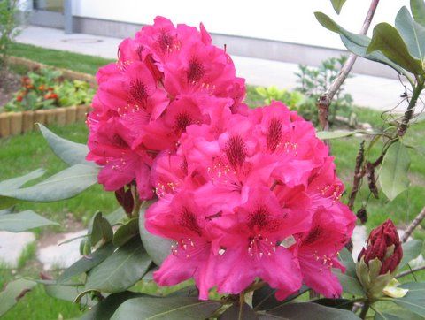 rododendron v malem atriju že cveti