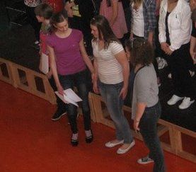Odpeljali smo se z avtobusom in kombijem v Kranj v Ledeno dvorano,ki je bila kar