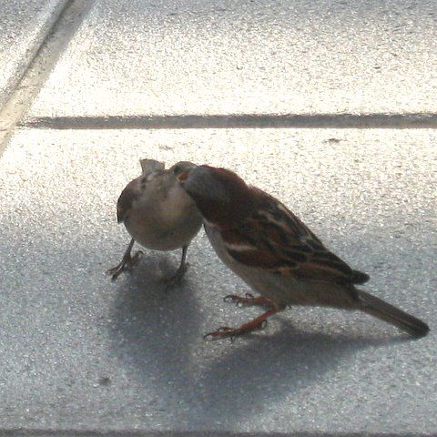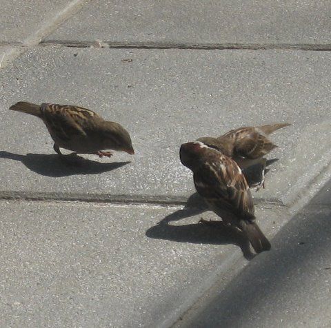 ...starši krmijo, malo pa pobirajo drobtinice tudi sami.