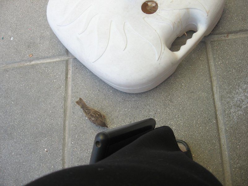 Predvidevamo, da je tale mladiček vrabček Lojze sirota, saj vedno prihaja sam in
