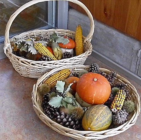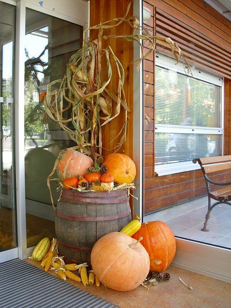 Ob vhodu obiskovalce pozdravi lepa jesenska dekoracija.