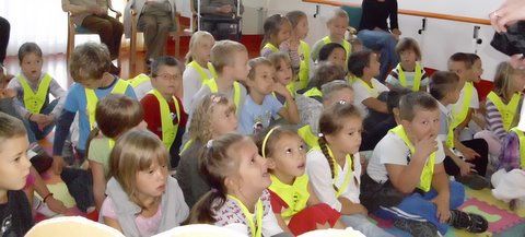 ...na Krpana. Na prizorišče so prvošolčke usmerjali...