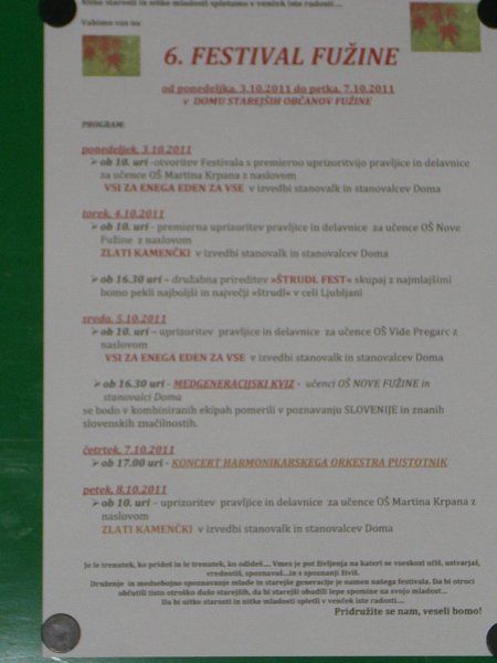 Od 3. do 7.10. bo potekal FESTIVAL FUŽINE.
