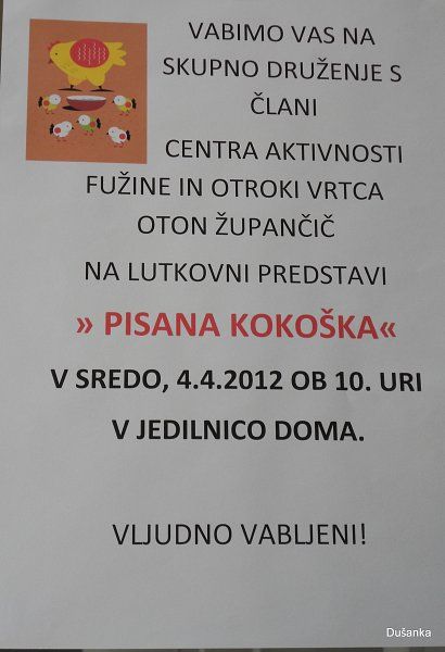 ...simpatično lutkovno predstavo Pisana kokoška.