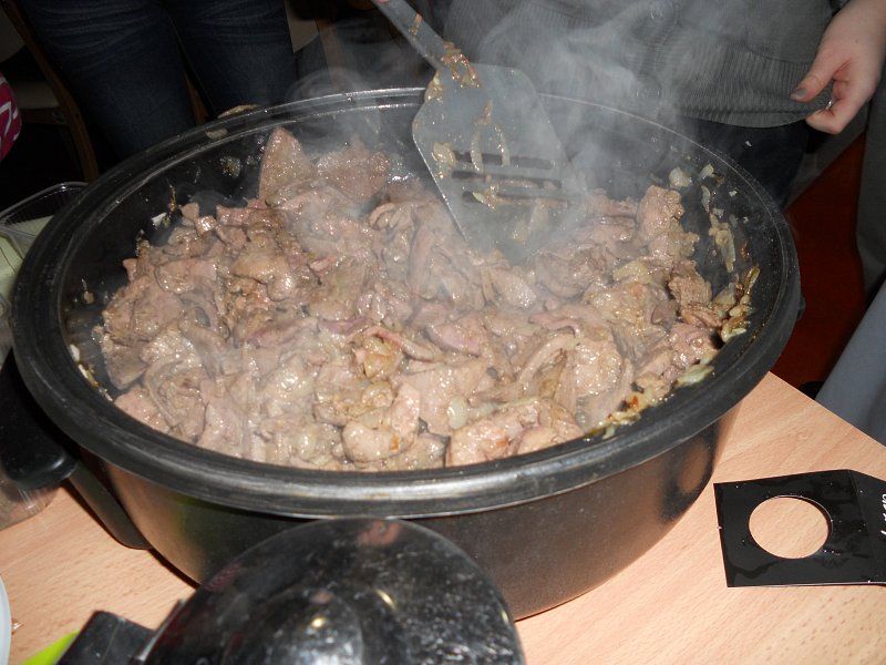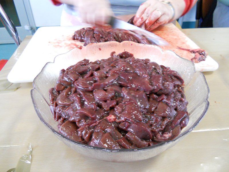 Kar pri mizah smo sesekljali čebulo in si pripravili odlična jetrca,