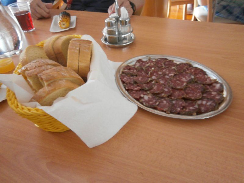 ...koruzni kruh, poleg pa salama, ki smo jo pripravili ob kolinah.