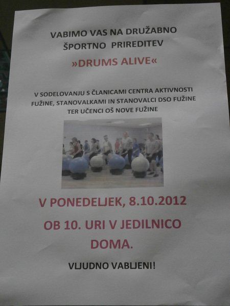 deljek s športno prireditvijo "Drums alive" skupaj z učenci, stanovalci Doma in