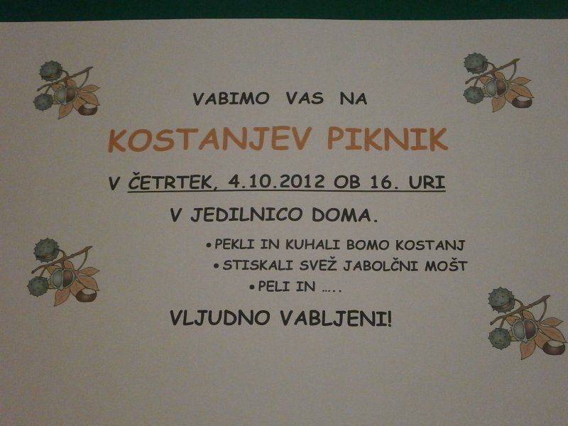 Na kostanjev piknik naj bi sicer šli v naravo, a nam je vreme preprečilo potep,