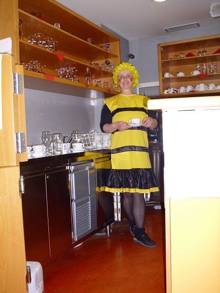 Saj sploh ni pomembna nagrada, važno je, da se zabavamo in se imamo lepo. Tiste šunke, pečene v testu, ki so bile nagrade za prve tri, smo pa tako in tako vsi pojedli na pokopu pusta. Nagrajeni dimnikarji, smrkci in snežaki so pa resnično bili krasni, pa vsi ostali tudi. Naši zaposleni se resnično potrudijo, da nam je fino.