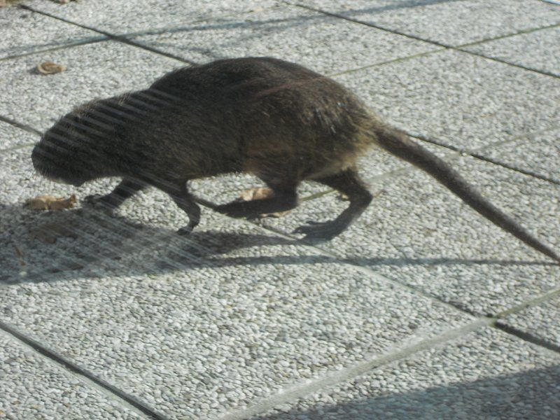 Včeraj nas je v domskem parku obiskala pižmovka. V zatišju, kjer je sneg skopnel